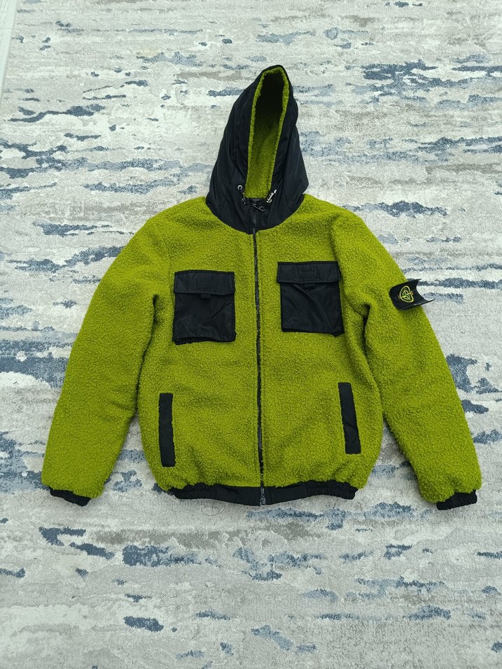 Bu erkek kapüşonlu hırka, fermuarlı ön kısmı, iki göğüs cebi ve rahat kesimi ile koyu yeşil renktedir. Uzun kollu, dış mekânda kullanıma uygun, konforlu ve sıcak tutan kumaştan yapılmıştır.