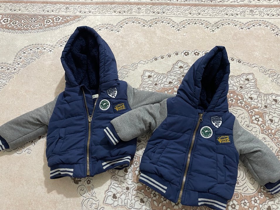 Kapüşonlu ikiz Erkek Çocuk Mavi Mont