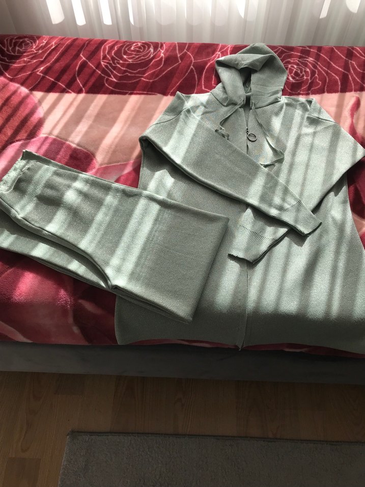 Kadınlar için kapüşonlu, uzun kollu eşofman takımı, rahat sentetik kumaştan üretilmiştir. Günlük kullanım ve spor şıklığı için uygundur. Standart bedendir