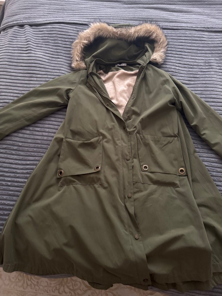 Yeşil kadın parkası, kapüşonlu ve fermuarlı. günlük sokak stili için uygun.arkadan ıstersenız fermuarı kapadıp darda kullanabılırsınız 38 bedenden 42 bedene kadar olur Beden 40.