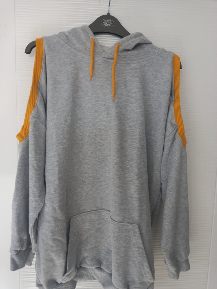 Kadın omuz detaylı kapüşonlu kadın sweatshirt L beden çok temiz ve yenidir sayılı kullanıldı. rahat kesim ve yumuşak kumaştan üretilmiştir. fotoğraflarda ölçüleri vardır. pamuklu kumaştir.