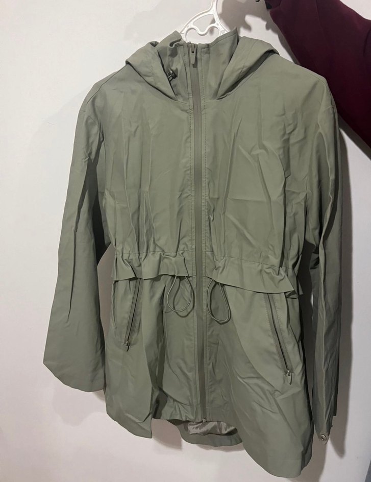 Kapüşonlu kadın yağmurluk