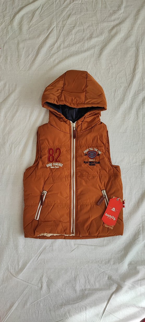 Kapüşonlu Kahverengi Erkek Çocuk Yeleği
