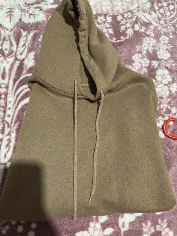 Kapüşonlu, kahverengi oversize sweatshirt, uzun kollu ve yumuşak, sıcak kumaştan. Sade tasarımıyla gündelik kullanıma uygun, zahmetsiz şıklık sunar.