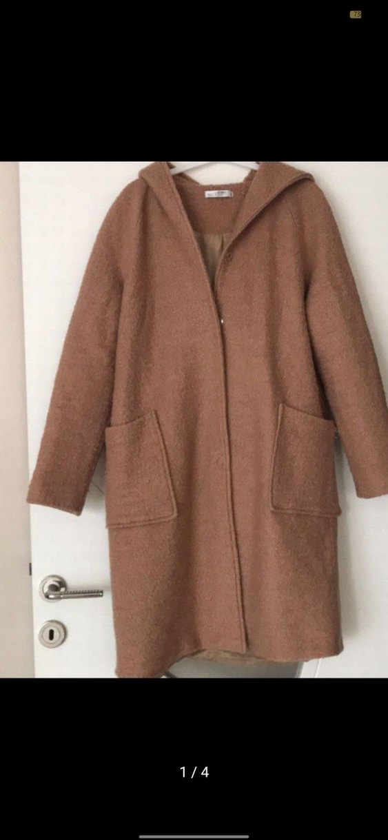 Kapüşonlu ve büyük cepleri olan kahverengi yün kaban, soğuk havalar için sıcaklık ve konfor sağlar. 55 cm iki kol arası boyu 93 cm
