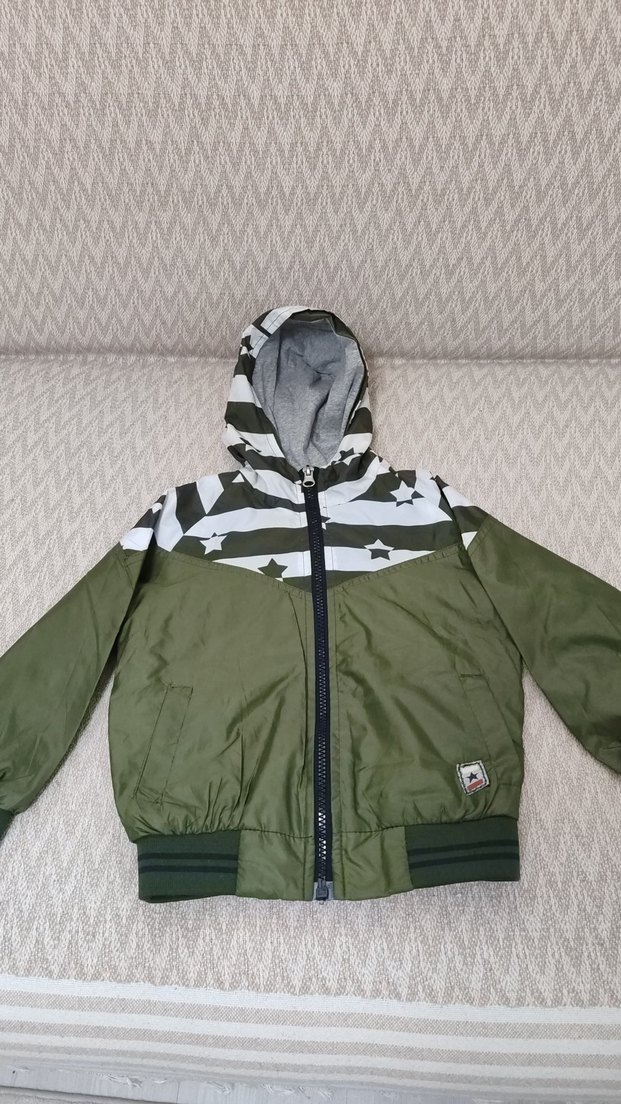 Dik kesim, kapüşonlu erkek çocuk montu, yeşil kamuflaj deseni ve fermuarlı ön kapama ile dikkat çekiyor. ⭐3 4 yaş icin