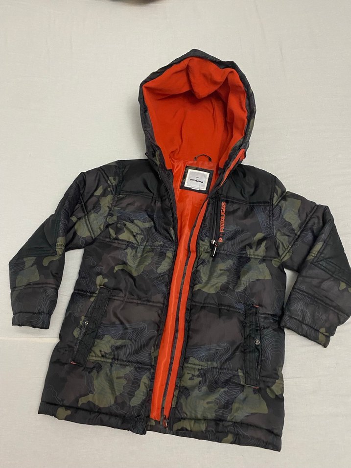 Kapüşonlu, fermuarlı, kahverengi kamuflaj desenli, içi yumuşak ve sıcak kumaşlı erkek çocuk mont. Sokak stili için uygun, dar kesim.