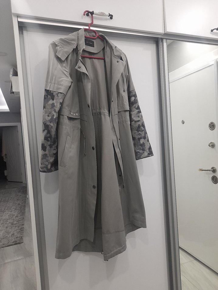 Kapüşonlu, kamuflaj desenli kollara ve kemerli bele sahip uzun gri yağmurluk. kumaştan üretilmiş, bol kesim ve dış mekan kullanımı için uygundur. ️ cok kalıtelı malı var pahalı magzadan alındı 1kez kulanıldı yes yenı 40 bedene yapışır ama 38 tam olur mankende görüldüğü gibi boyutu durusu ornek olsun diye paylaştım ürün zaten kendını gosterıyo kalıte 10.numara bu kalitede ürünü su an alsanız magzadan zaten accort da bu fıyata penye veriyorlar 4 binden aşagı bunu alamazsınız ben cok uygun yazdım sonuçta 1kezde olsa kulanıldı