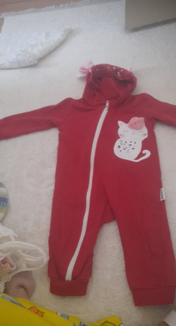 Kapüşonlu Kedi Desenli Kırmızı Kedi Tulumu