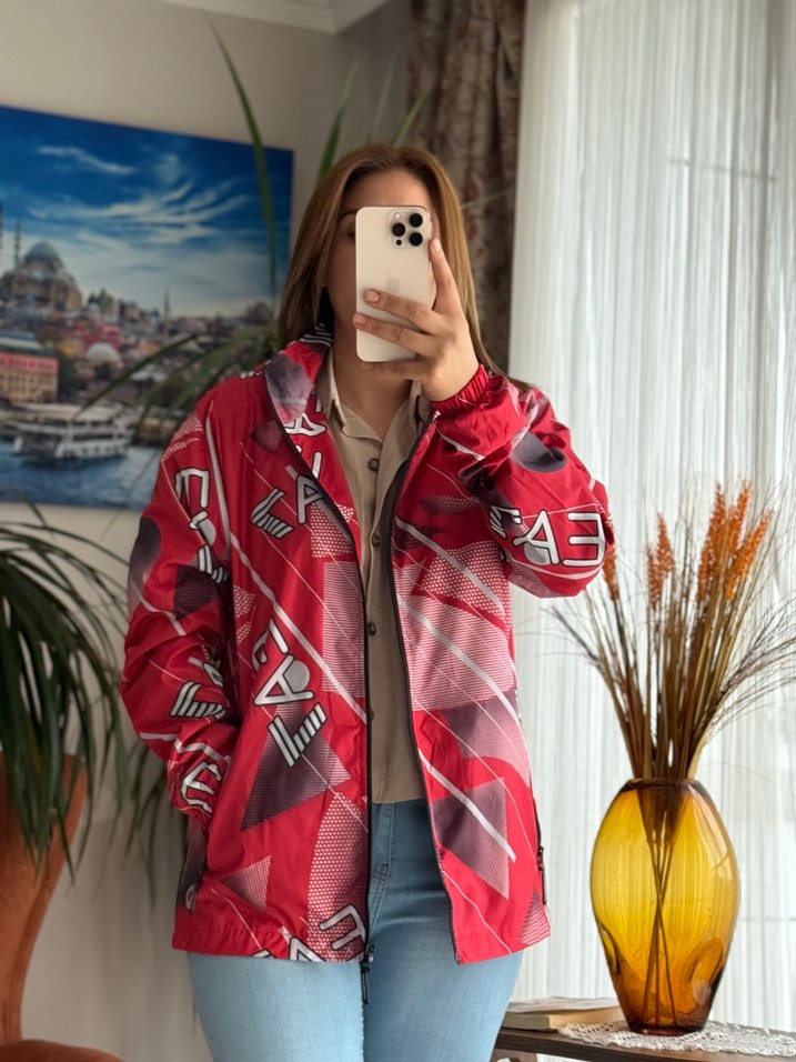 Kadınlar için kapüşonlu, fermuarlı ve kırmızı batik desenli, bol kesim midi uzunlukta sentetik kumaştan ceket. Uzun kollu, günlük kullanıma uygun. Unisex Yağmurluk hiç kullanılmadı.Etiketli mağaza ürünüdür.Yağmura ve Rüzgara karşı korur Suyu üzerinde tutmaz Su geçirmez