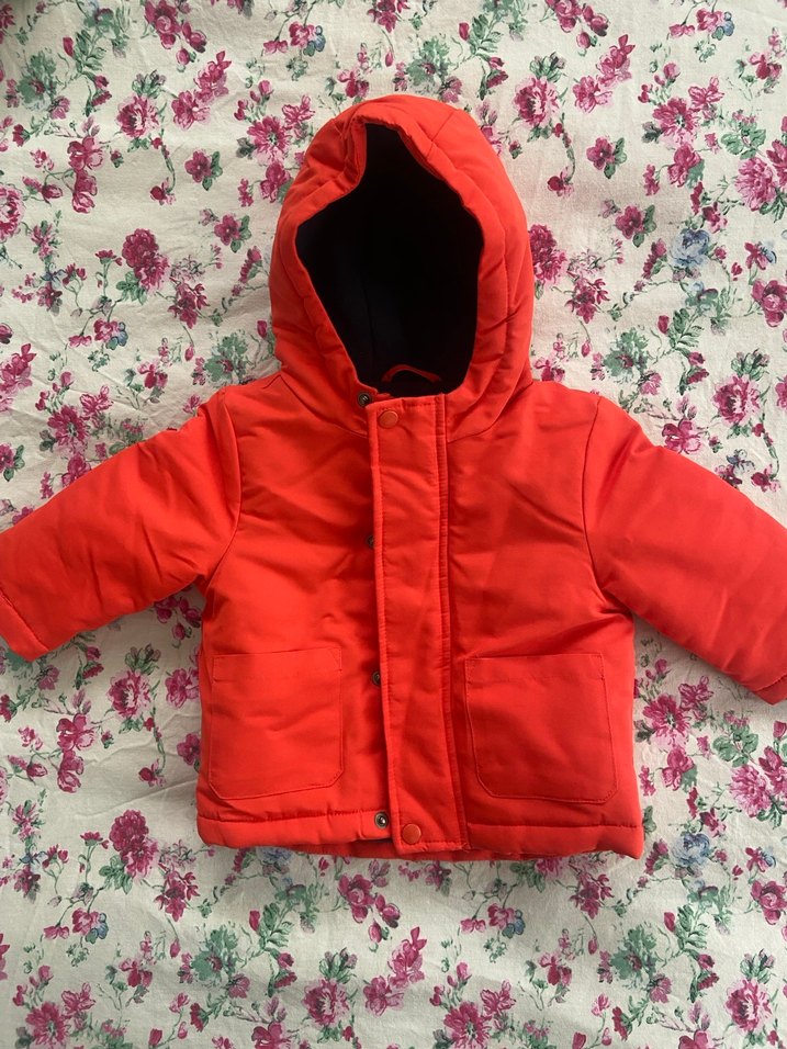 Kapüşonlu, düğmeli kırmızı erkek çocuk mont. Soft ve sıcak kumaştan, düz ve renkli tasarıma sahip, sokak stili için uygun. Tam kırmızı değil nar çiçeği gibi tatlı bi ton taş gibi yurtdışından alındı tertemiz