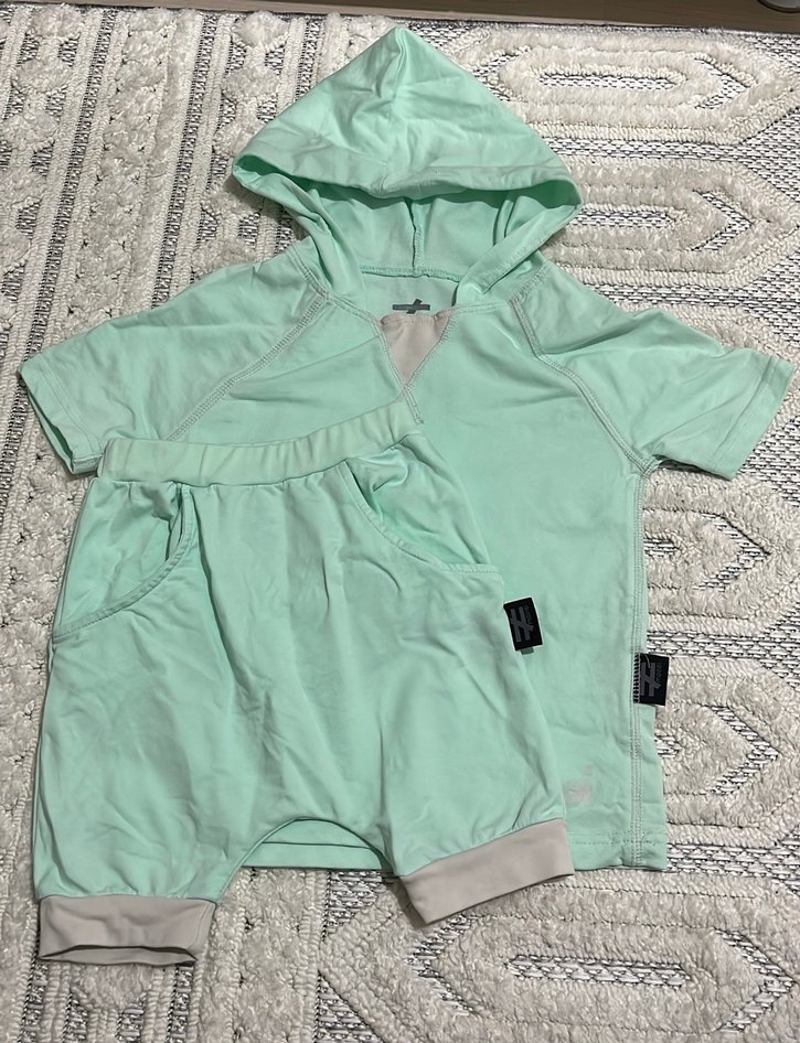 Pastel yeşil renkte, kapüşonlu ve kısa kollu bebek erkek kıyafet seti. Yumuşak ve sıcak kumaştan, rahat manşetli şort ile uyumlu, zahmetsiz şıklık sunar. 4 yaş