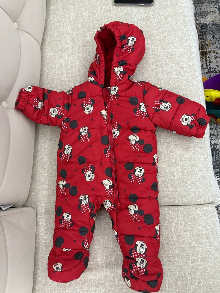 Kapüşonlu yaka, örme detaylar ve renkli baskılı desene sahip kırmızı kız bebek tulumu. Soğuk havalar için dolgulu ve tam kapalı tasarım. 2-3 kez kullanıldı resimde görüldügü gibi❄️