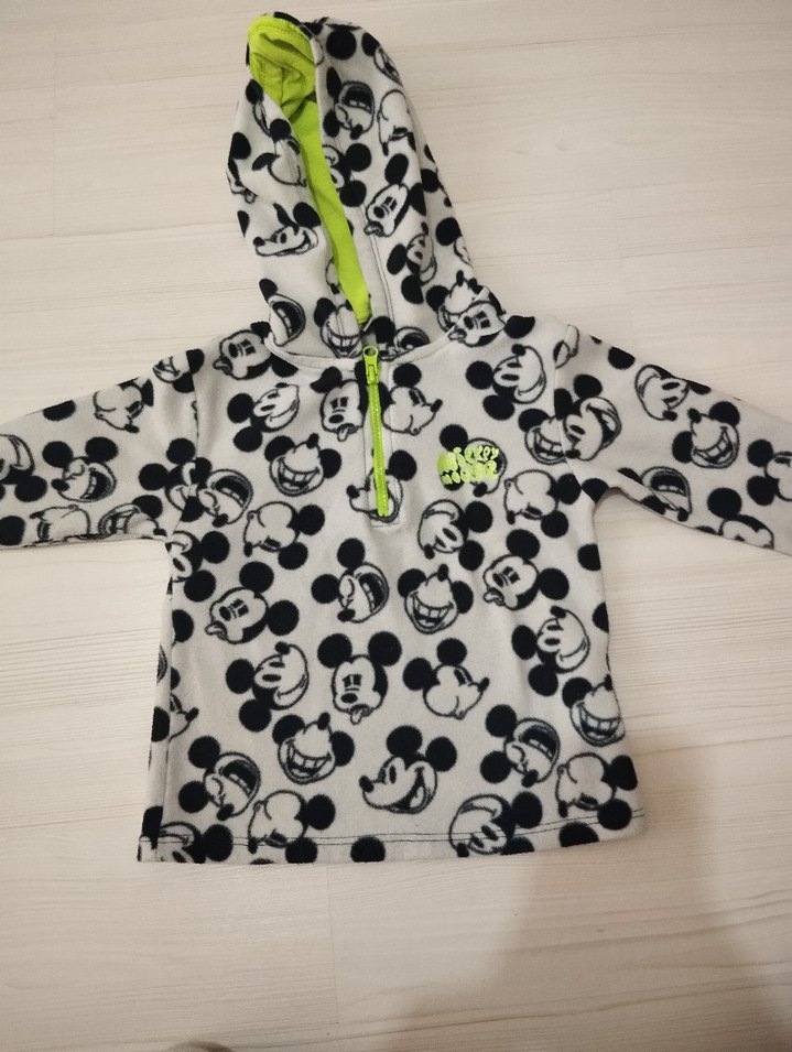 Yumuşak kumaştan yapılmış, kapüşonlu ve uzun kollu, neon yeşil astarlı fermuarlı gri baskılı kız çocuk sweatshirt.