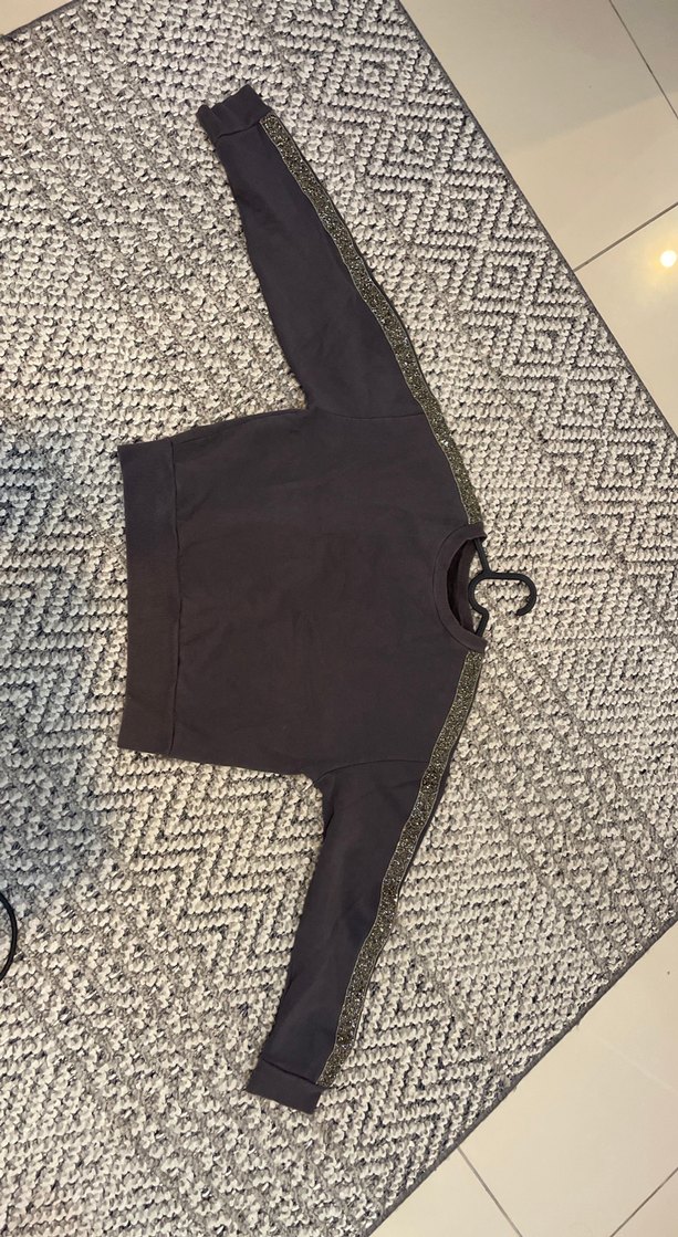 Gri renkte, kapüşonlu ve uzun kollu erkek çocuk sweatshirtü. Omuzlarında kürk detayları bulunur, bol kesim ve sokak stilindedir.