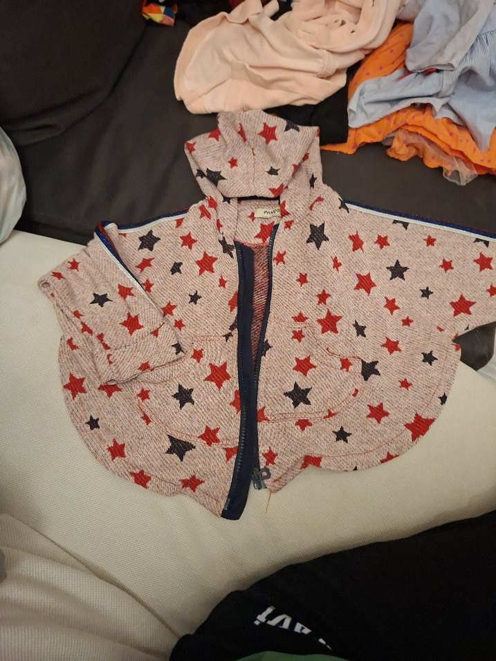 Kapüşonlu ve fermuarlı, bol kesim kız çocuk ceketi. Yıldız desenli, yumuşak ve sıcak kumaştan, gri ve kahverengi tonlarında, sokak tarzına uygun.⭐