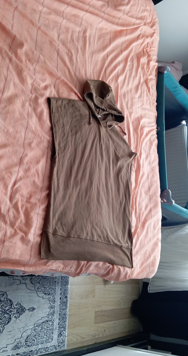 kapüşonlu, kolsuz, salaş ve dökümlü kesime sahip