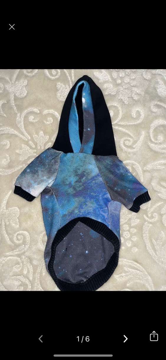 Örgü kumaştan yapılmış, mavi batik desenli kapüşonlu köpek kıyafeti, rahat ve sokak tarzı bir görünüme sahiptir. Sadece bir defa giyilmiştir küçük geldiği için koyuyorum M beden ölçüler son fotoda