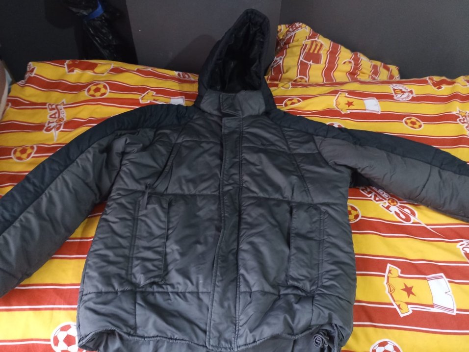 Kapüşonlu, fermuarlı koyu gri erkek mont. Uzun kollu, normal boyda. S beden Nike mont kullanılmış yırtığı vs yok tam kışlık kalın mont. Kolunun içinde montun lastikli kısmı var sadece lastikleri gevşemiş o kadar