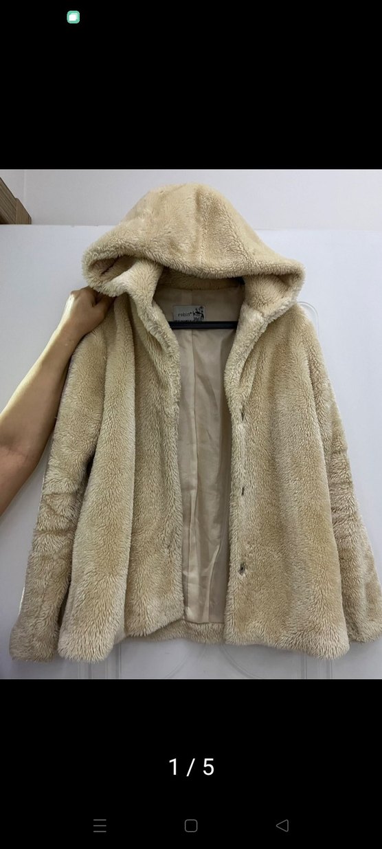 S ve belki S/M arası giyenler için uygundur. Ölçüler fotoğraflarda mevcut. Kol uçlarında hafif düzleşme var. En üst çıtçıtı yok ben o şekilde kullandım dilerseniz çıtçıt alıp dikebilirsiniz. Rengi son fotoğraflardaki gibi krem rengi.