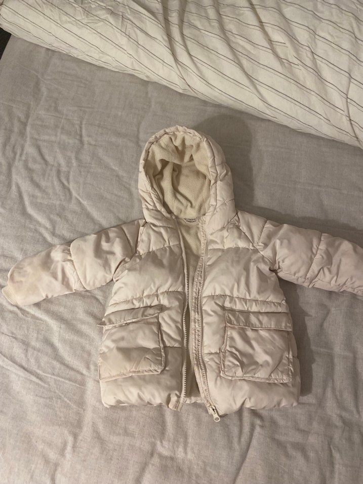 Kapüşonlu ve yumuşak kürk detaylı, beyaz renkli kız çocuk montu. Sıcak tutan fleece kumaştan üretilmiş, düz ve sokak tarzına uygun model. ❄️ 12.18 aylık