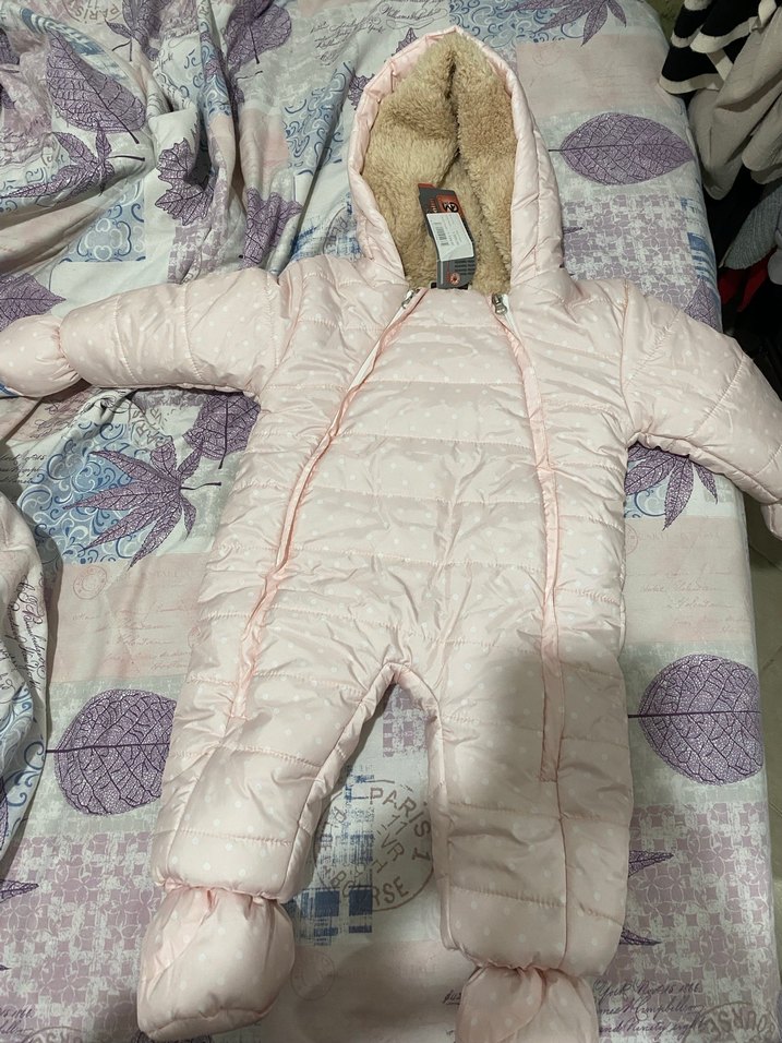 Pastel pembe renkte, kapüşonlu ve kürk detaylı bebek astronot mont