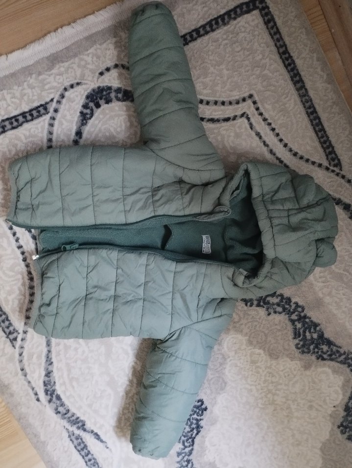 Kapüşonlu, kürk detaylı erkek veya kız çocuk fark etmez unisex bı model 2 defa giyildi kulak detaylı