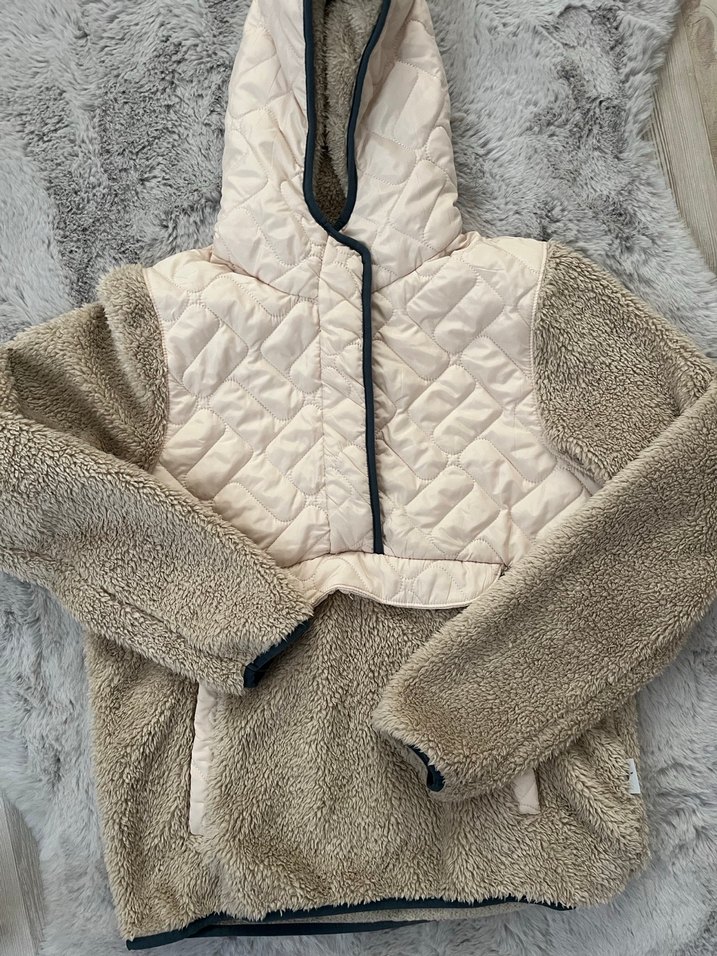 Kapüşonlu, kürklü detaylı, bej renkli kadın mont. Yumuşak ve sıcak kumaş, kapitone ve kürk detaylarıyla rahat ve şık bir görünüm sunar. Midi boy, sade tasarım, günlük kullanım için uygundur.