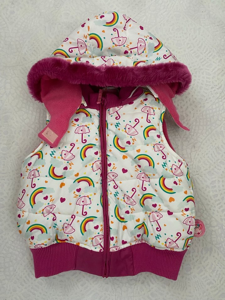 Kapüşonlu, Kürklü, Renkli Kız Çocuk Yelek