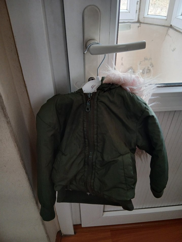Kapüşonlu, kürklü yeşil kız çocuk montu