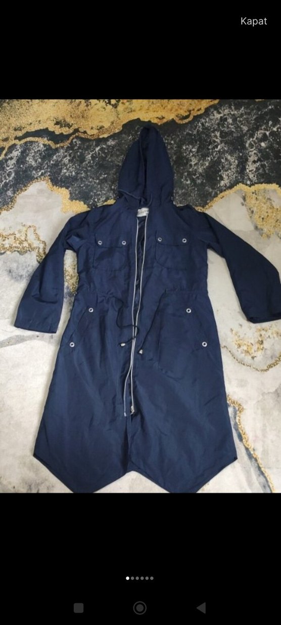 Kapüşonlu ve fermuarlı, yumuşak ve sıcak fleece kumaştan yapılmış lacivert uzun yağmurluk. Bol kesim, uzun kollu ve kullanışlı ceplidir. Günlük rahat kullanım için uygundur. ️