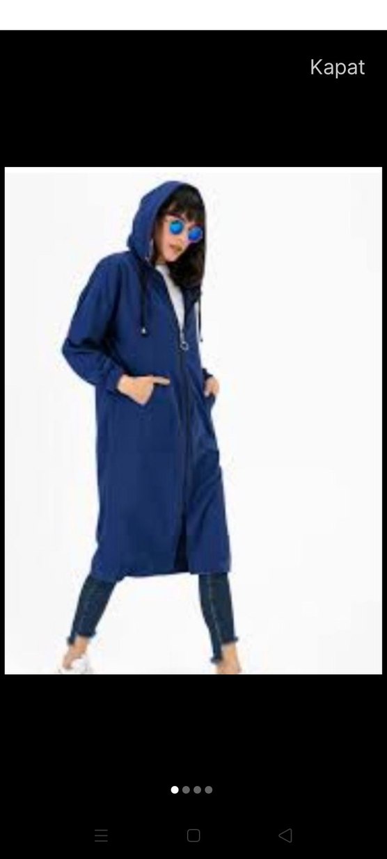 Kapüşonlu ve fermuarlı, lacivert uzun kadın yağmurluğu. Rahat kesim ve uzun kollu, yumuşak ve sıcak dokulu kumaştan, gündelik sokak giyimine uygun. ️