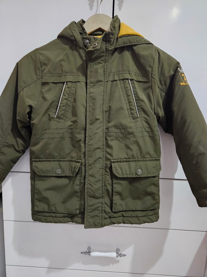 Kapüşonlu, kamuflaj desenli erkek çocuk mont. 5 6 yaş temiz deformasi yoktur