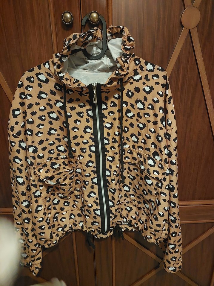 Kapüşonlu Leopar Desenli ince yagmurluk genis kalip