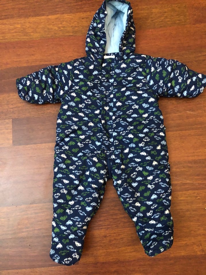 Kapüşonlu Mavi araba Baskılı Bebek kar Tulumu