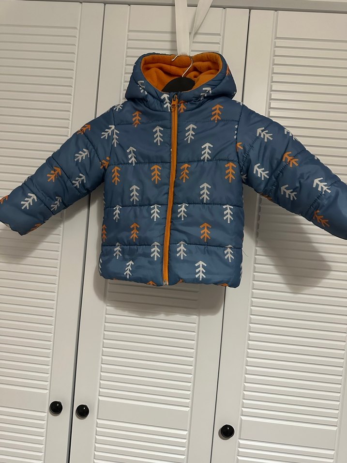 Kapüşonlu Mavi Baskılı Erkek Çocuk Mont 3 yaş
