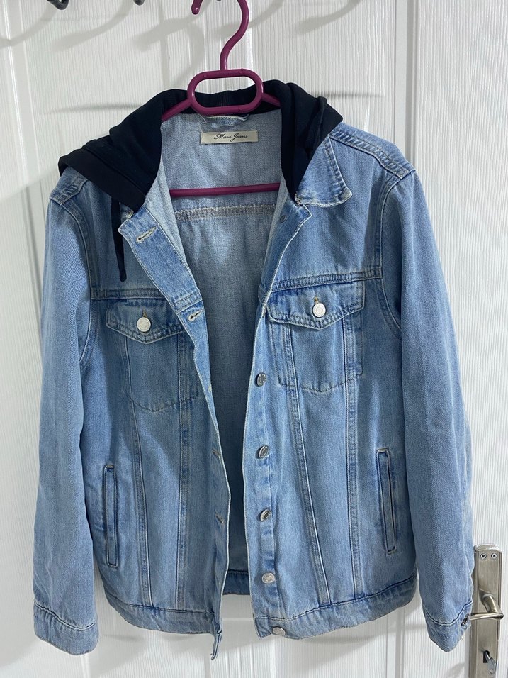 Kapüşonlu, düğmeli ve uzun kollu bu bol kesim kadın denim ceket, günlük sokak stiline uygundur. Mavi renkte ve desensizdir, normal midi boyundadır.