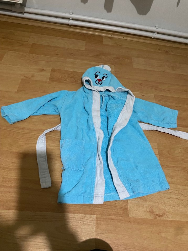 Kapüşonlu Mavi Erkek Çocuk Bornozu 2,5 -3 Yaş
