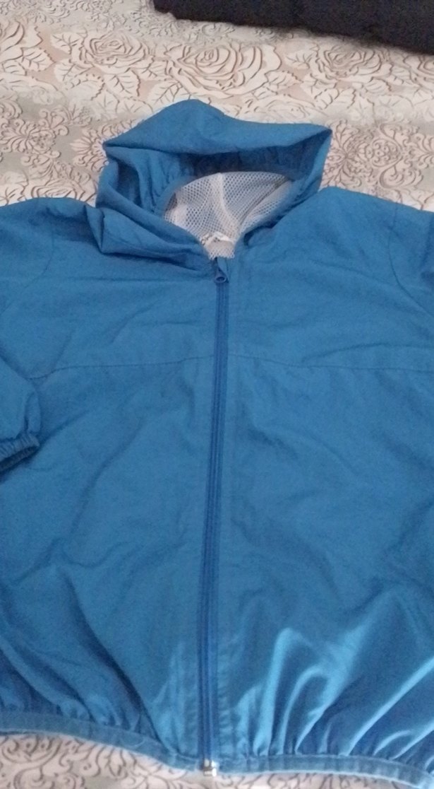 Kapüşonlu ve fermuarlı, sentetik kumaştan yapılmış, dar kesim ve desen içermeyen mavi erkek yağmurluğu. Açık hava için uygundur. ️