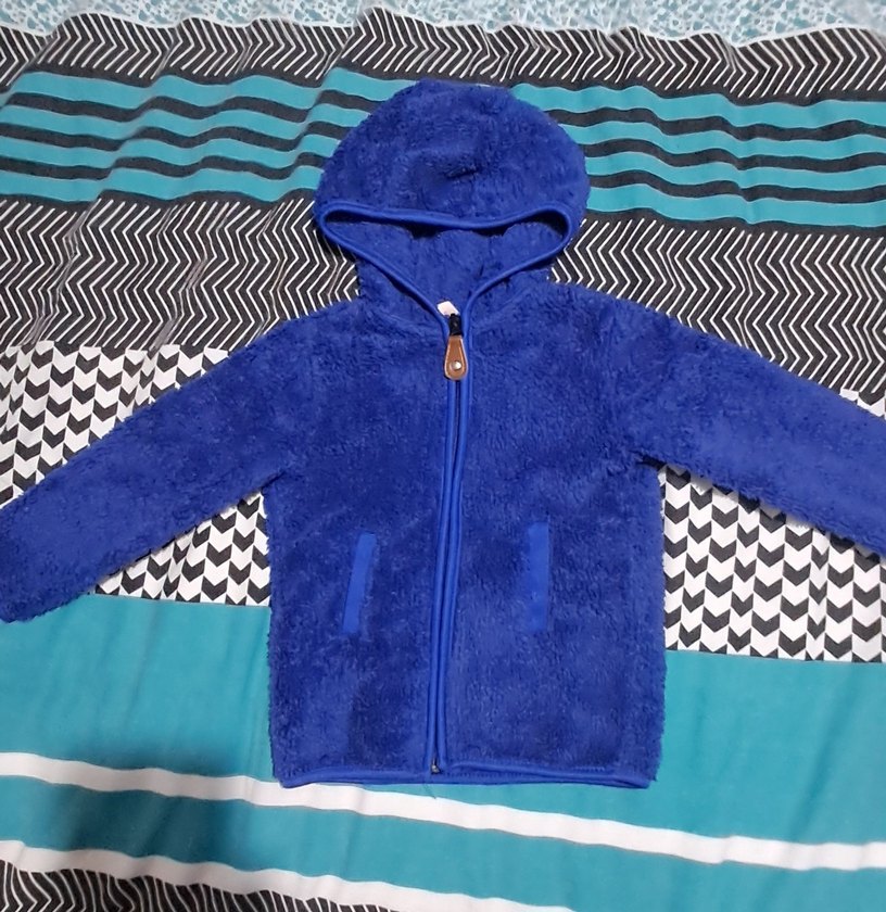Renkli mavi, kapüşonlu ve fermuarlı bu erkek çocuk ceketi, yumuşak ve sıcak bir kumaştan yapılmıştır. Trendy casual tarz için uygundur.