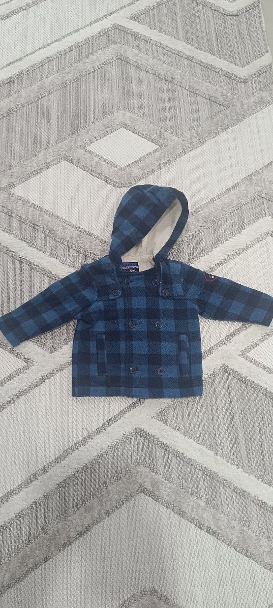 Bu erkek çocuk ceketi, düğmeli ön ve kesik yaka ile regular fit olarak tasarlanmıştır. Mavi kareli desene sahip, yumuşak ve sıcak kumaştan kapüşonlu streetwear tarzında bir üründür.