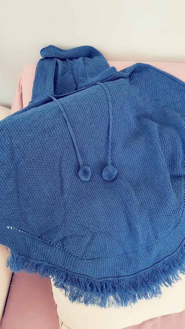 Kapüşonlu, uzun kollu ve bol kesimli mavi örgü hamile hırkası, bohem tarzıyla günlük kullanıma uygundur. Rahat ve sıcak bir yapıya sahiptir.
