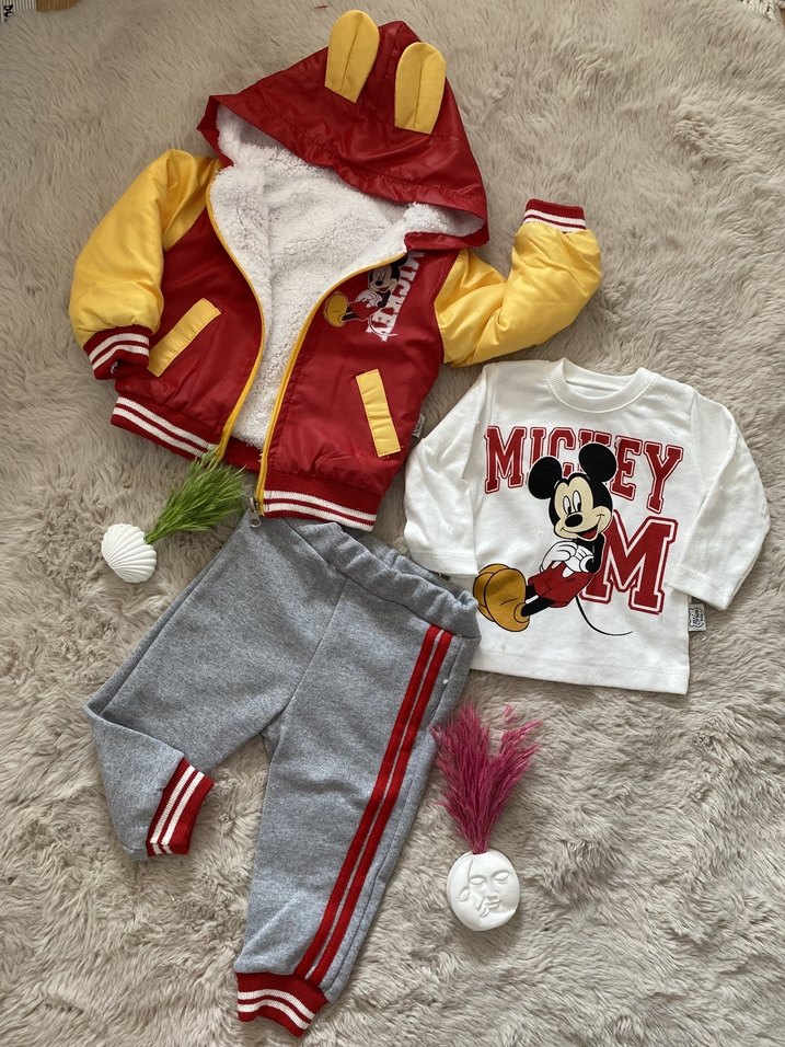 Kapüşonlu Mickey Baskılı Erkek Bebek Takımı