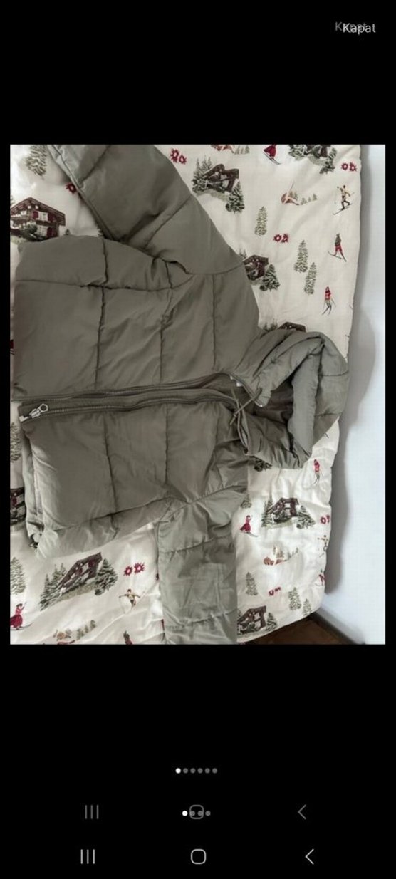 rengi gri açık haki gibi çok güzel.kapüşonlu, fermuarlı ve uzun kollu, yumuşak ve sıcak kumaştan yapılmış, normal boyda, dar kesim kadın kışlık mont. ❄️