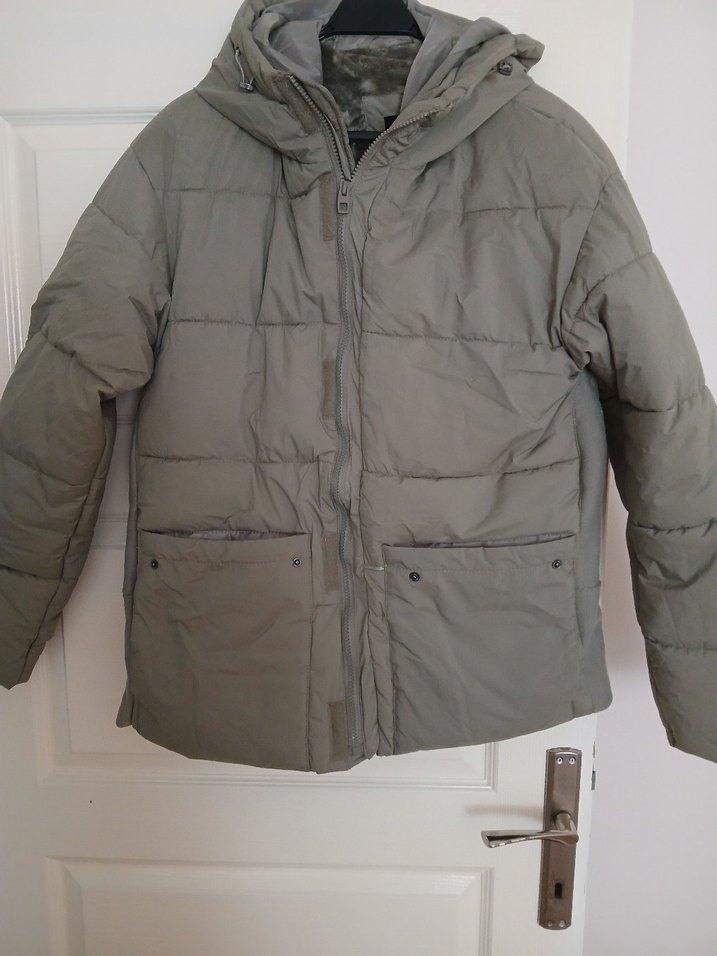 Uzun kollu, notched lapel yakalı, normal midi boyunda ve sıcak tutan yumuşak kumaştan. Sokak stiline uygun, kapüşonlu ve ön ceplidir.