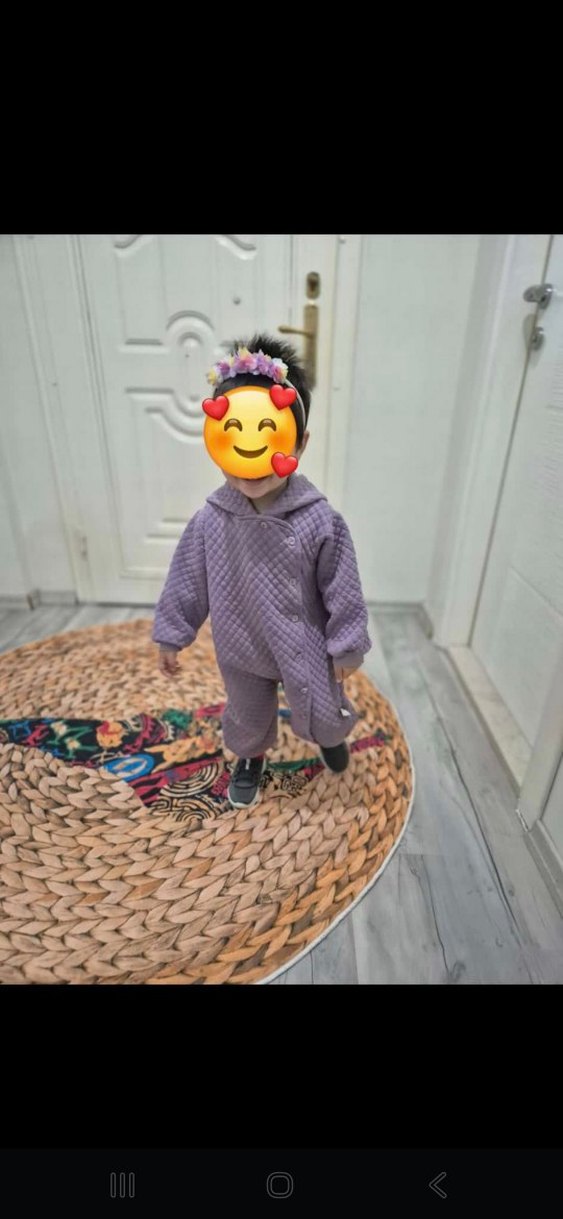 Kapüşonlu Mor Bebek Kız Tulumu