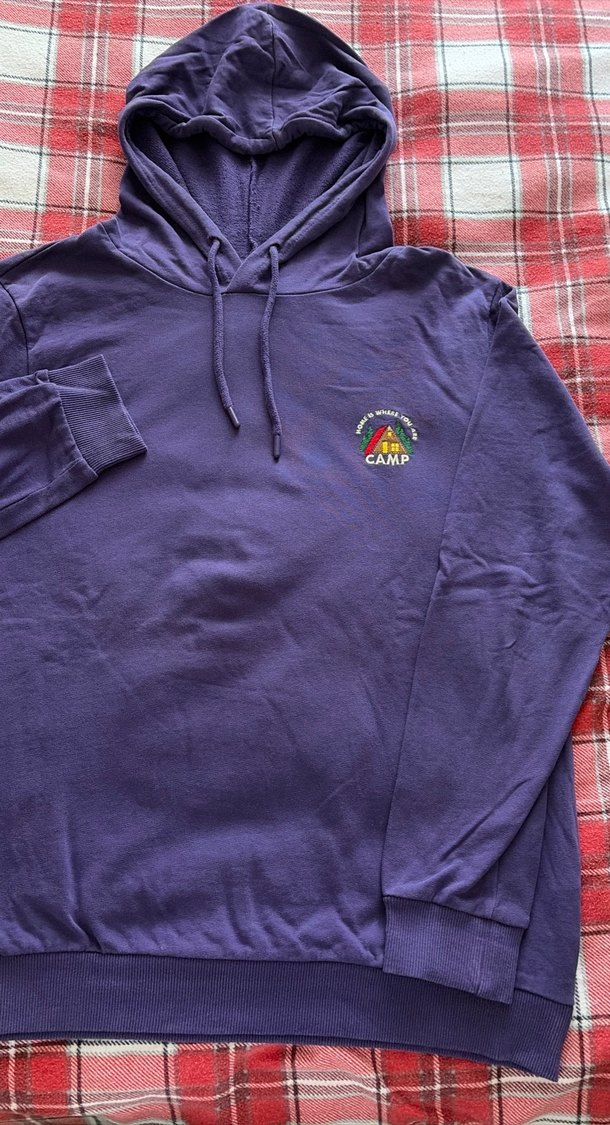 Kapüşonlu ve uzun kollu, yumuşak ve sıcak kumaştan yapılmış koyu mor unisex sweatshirt. Baskılı desenli, düğmeli ve bol kesimdir, dış mekan için uygundur. ️