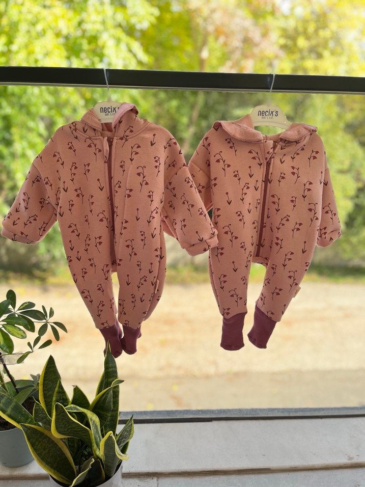 Kapüşonlu, örme, renkli desenli bebek tulumu, sıcak ve rahat tutar. ❄️ 03/3-6