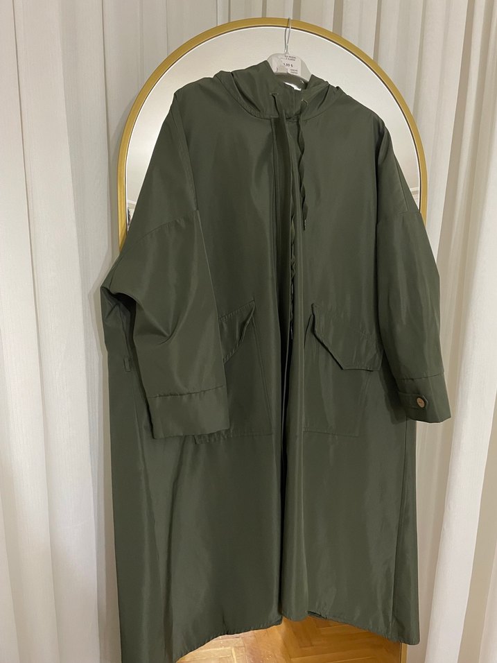 Kapüşonlu, salaş kesim, drapeli uzun boy kadın yağmurluğu. Minimalist ve sokak tarzına uygun, günlük kullanıma ideal. ️