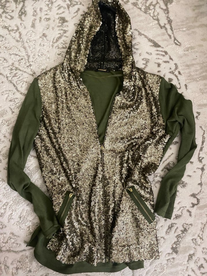 Kapüşonlu Payetli fermuarlı hırka L